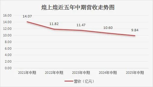 拉长时间线可见,2021年—2025年中期,其营收分别为14.07亿元、11.82亿元、11.47亿元、10.6亿元、9.84亿元,五年累计降幅达30%,下行趋势明显。